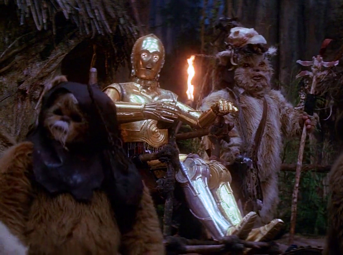 Then, on Endor, when the Ewoks mistake C3PO’s golden chassis for a god and begin to worship him, Luke, Han and Leia are happy to continue the charade so long as it gets them out of trouble. The Rebels take advantage of the Ewoks’ parochial naivety, making fun of their backward ways. There’s no room for pluralism in the Alliance.